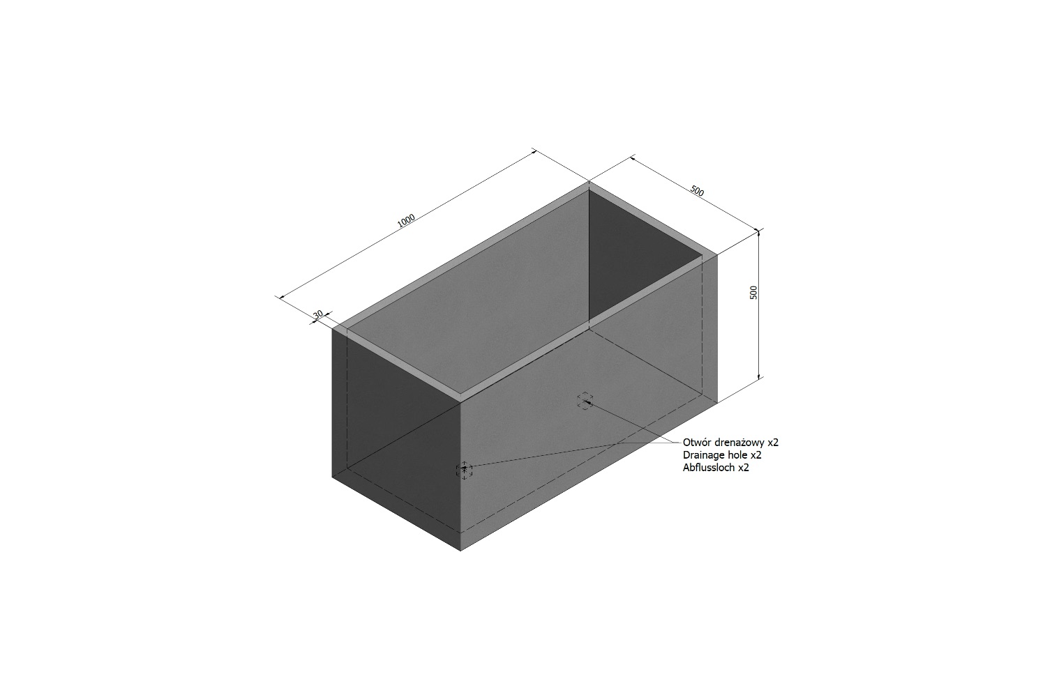 Basso 100×50×50 to donica o zrównoważonych proporcjach, która łączy niską formę z szerokim polem do nasadzeń. Doskonale nadaje się do roślin ozdobnych, niskich krzewów i traw, tworząc harmonijne aranżacje.