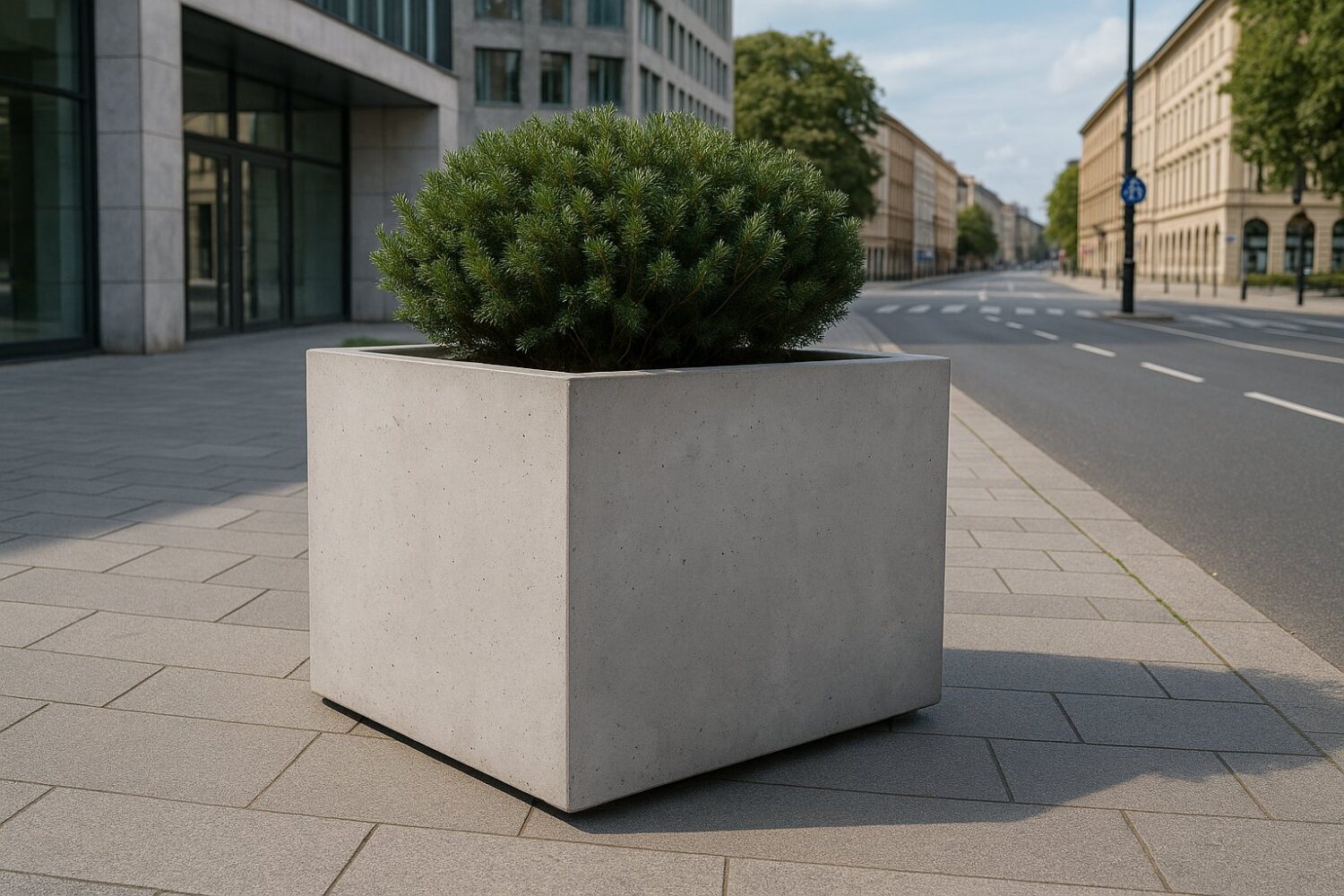 Duża donica betonowa Grande 120×100×100 – masywna forma XXL do przestrzeni komercyjnych i miejskich.