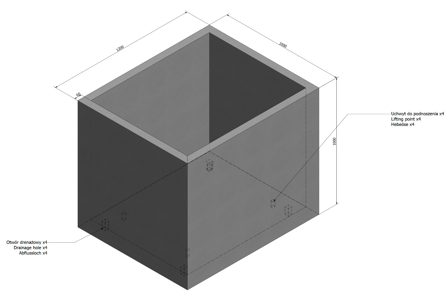 Grande 120×100×100 to donica o imponujących wymiarach, zaprojektowana do dużych przestrzeni. Jej monumentalny charakter sprawia, że stanowi centralny element aranżacji w ogrodach, na tarasach czy w przestrzeniach publicznych.