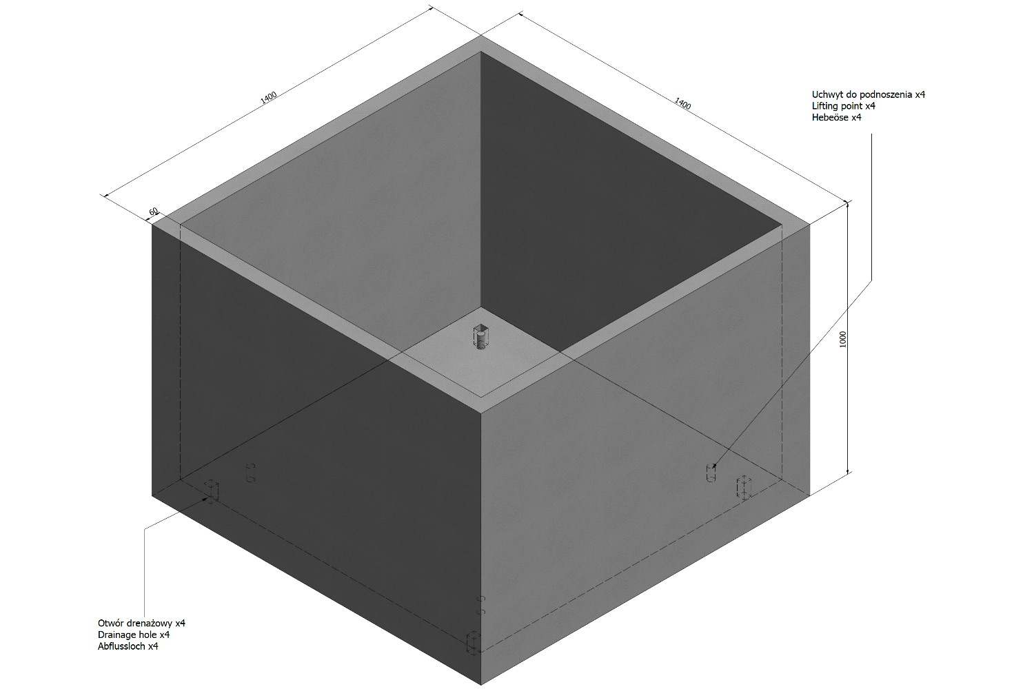 Donica betonowa Grande 140×140×100